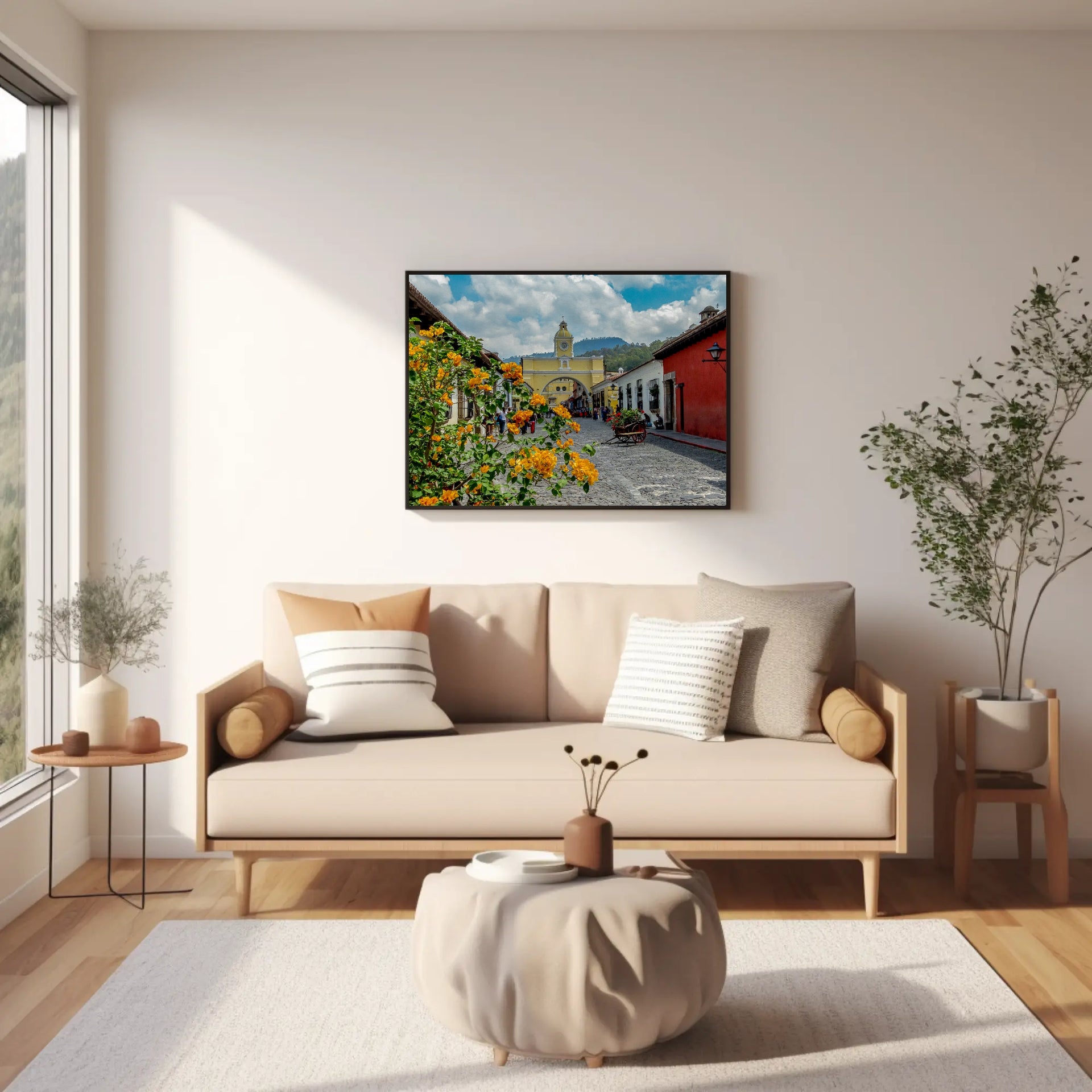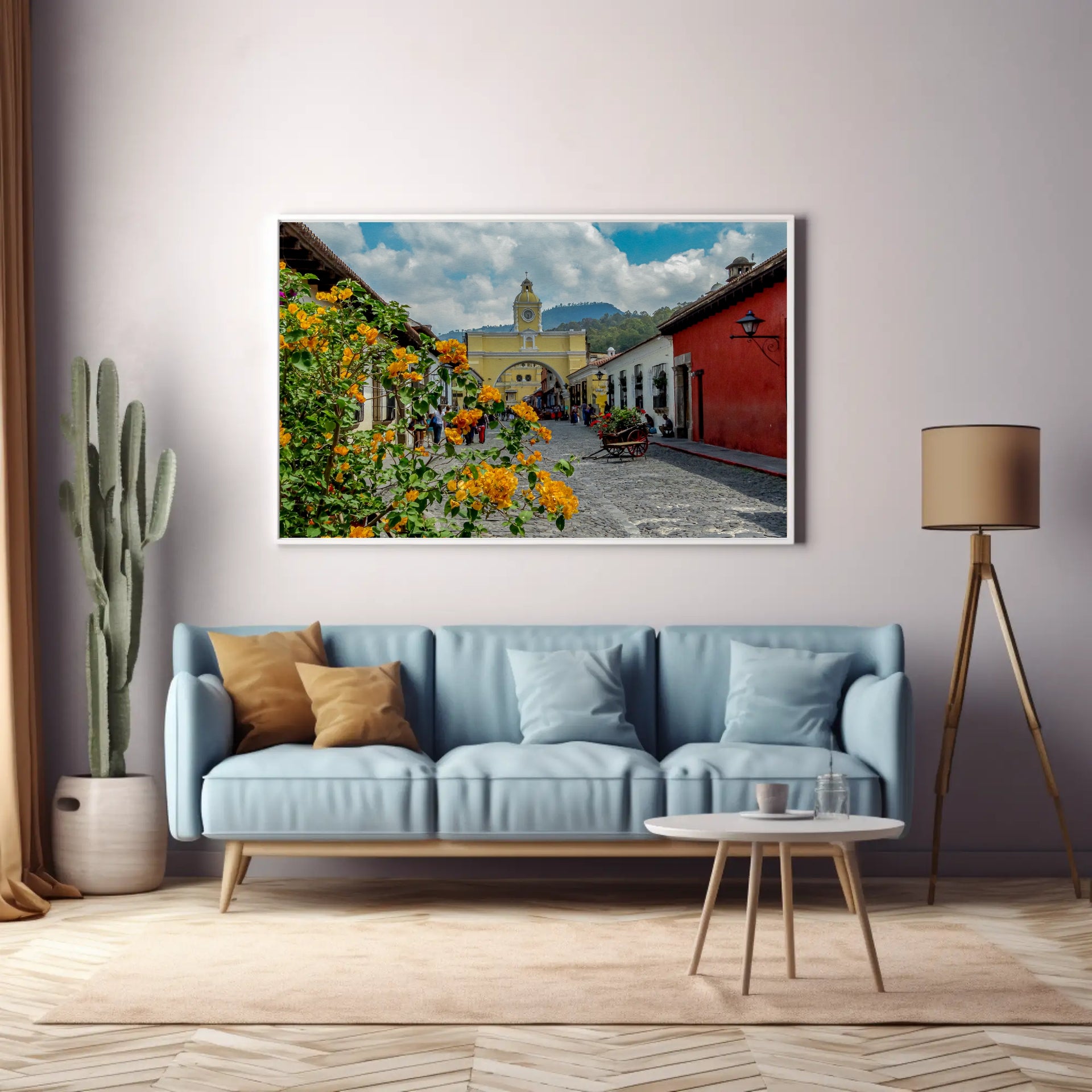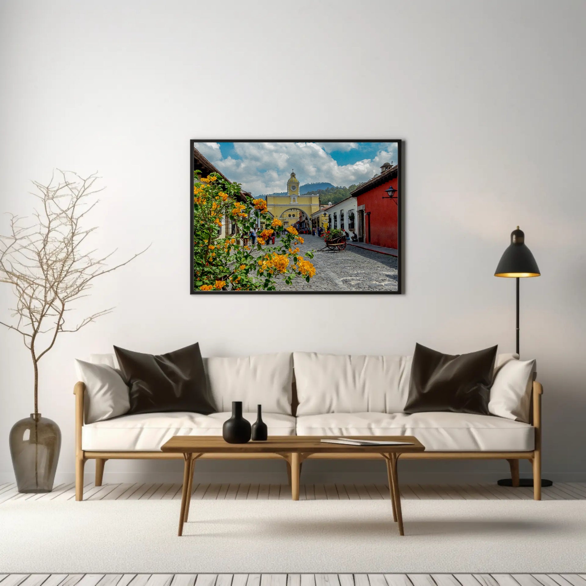Set in the unique atmosphere of a Guatemalan morning, Colorful Antigua Guatemala captures the city’s enduring grace beneath an endless blue sky. The Santa Catalina Arch, timeless and elegant, stands as a sentinel over cobblestone streets that have carried centuries of history. A cascade of orange blossoms offers a vivid counterpoint to the rich colonial facades, evoking the warmth, vitality, and soul of this UNESCO World Heritage treasure.